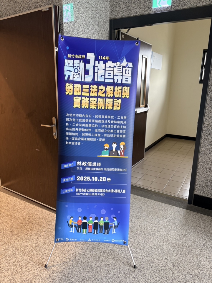114年10月28日,由勞動部指導、新竹市政府主辦、新竹市工業會協辦之【114年勞動三法宣導會─勞動三法之解析與實務案例探討】圓滿落幕。
