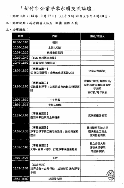 轉知「新竹市企業淨零永續交流論壇」,請協助轉知踴躍報名參加,請查照。