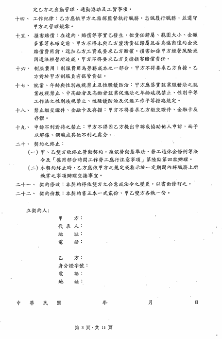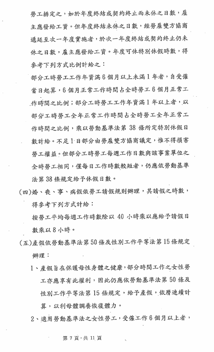 檢送勞動部修正「部分時間工作勞工勞動契約參考範本」,併附「僱用部份時間工作勞工應行注意事項」各一份,請協助轉知所屬會員,請查照轉行。