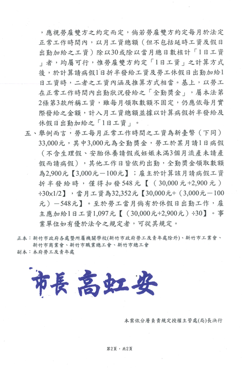 有關勞工請假規則第4條第3巷普通傷病假工資計算規定疑義,請查照並轉知所屬。