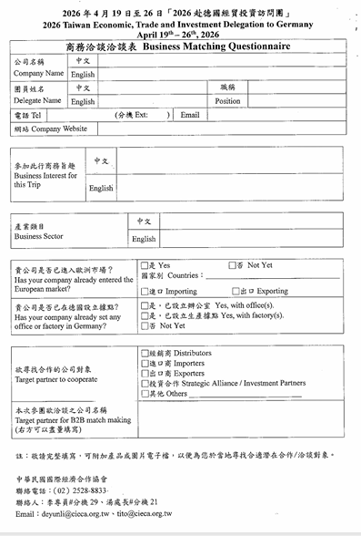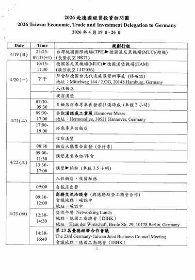 函轉社團法人中華民國國際經濟合作協會訂於本(115)年4月19日至26日籌組「赴德國經貿投資訪問團」,敬請協助轉知會員參加,請查照。
