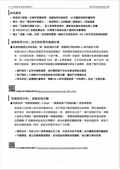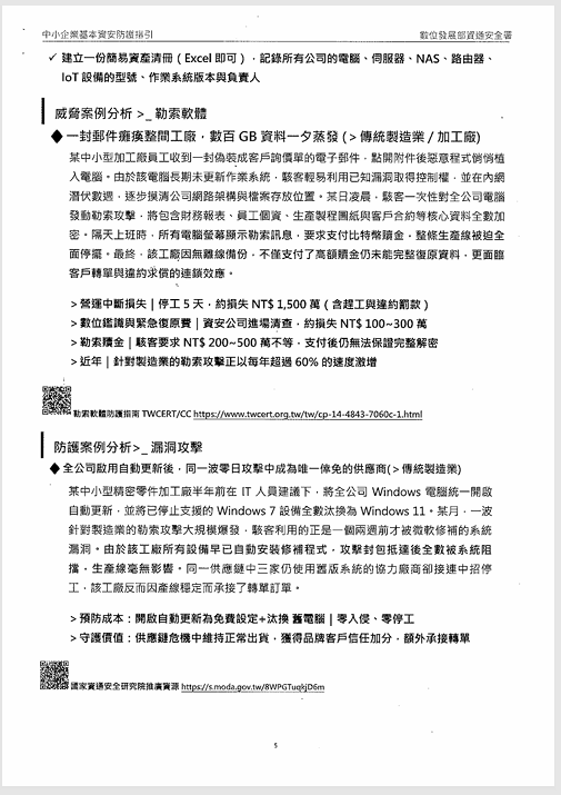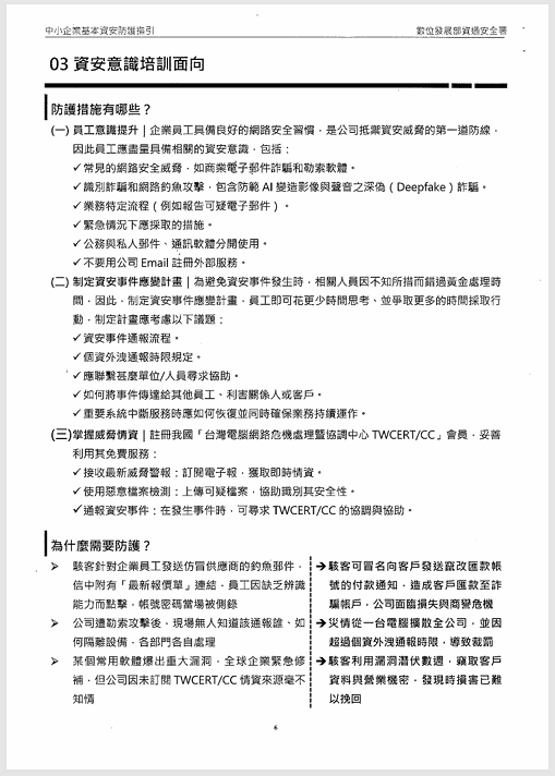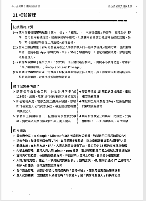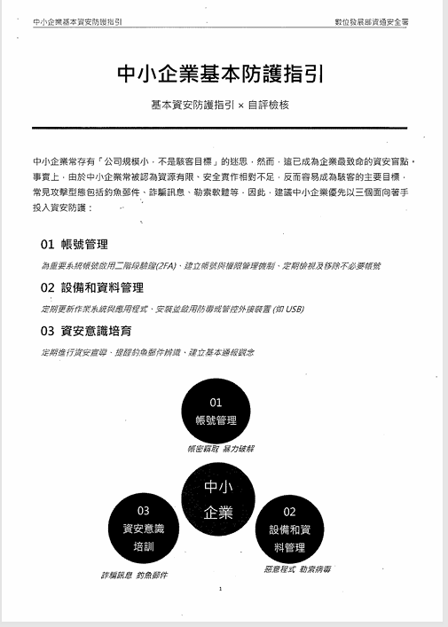 函轉數位發展部資通安全署「中小企業基本資安防護指引」1份,請協助轉知中小企業參考運用,請查照。