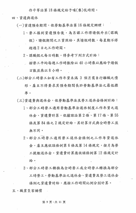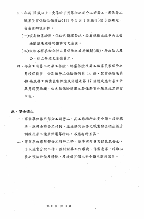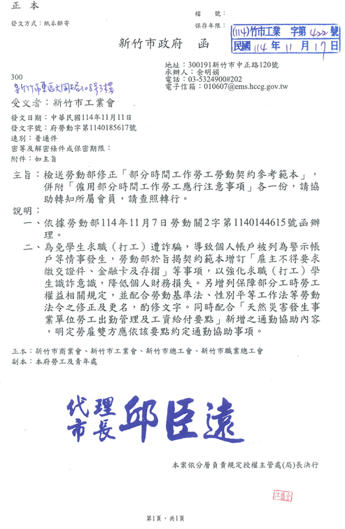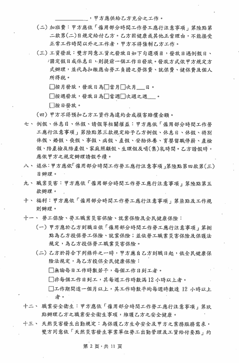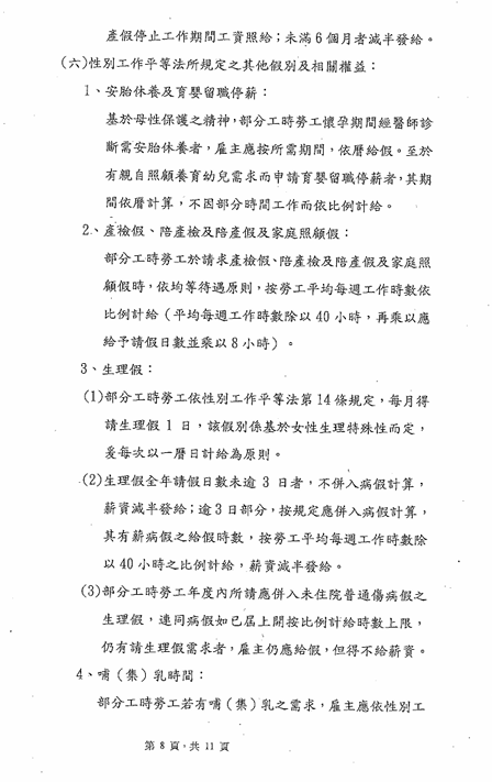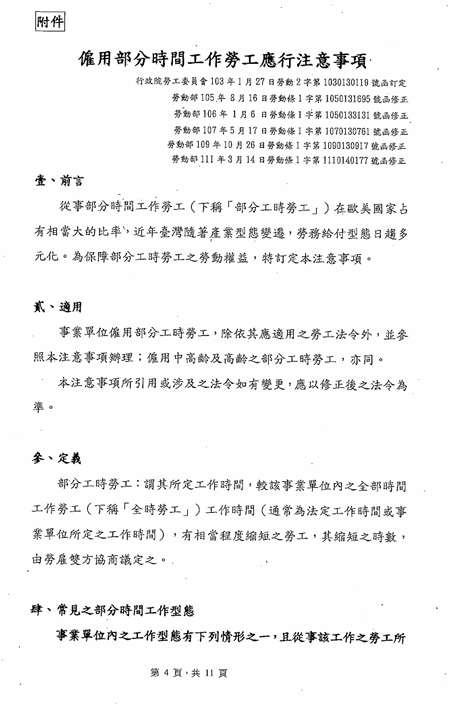 檢送勞動部修正「部分時間工作勞工勞動契約參考範本」,併附「僱用部份時間工作勞工應行注意事項」各一份,請協助轉知所屬會員,請查照轉行。