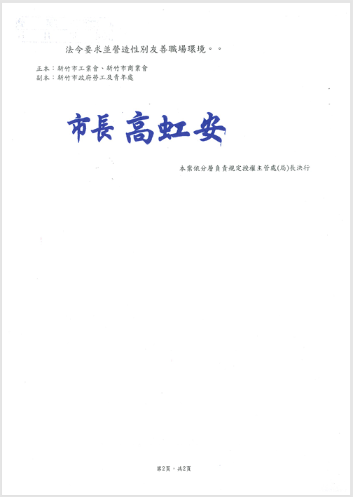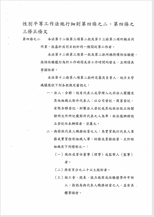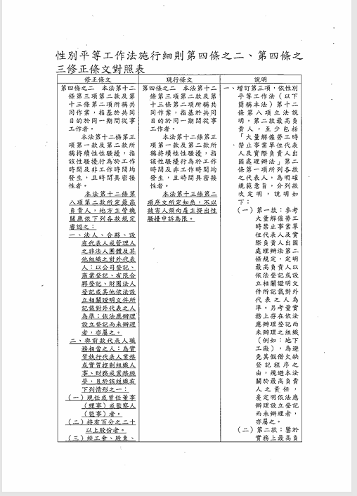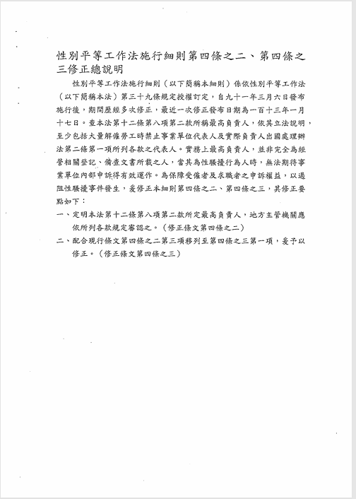 有關「性別平等工作法施行細則」第4條之2、第4條之3,業經勞動部於中華民國115年4月8日以勞動條5字第1150147759D號函修正發布,檢送發布令影本(函法規命令條文),請查照並轉知會員。 2026.04.20