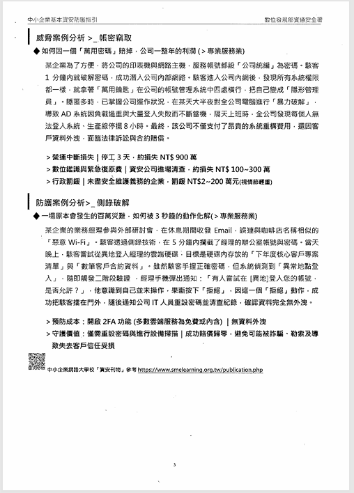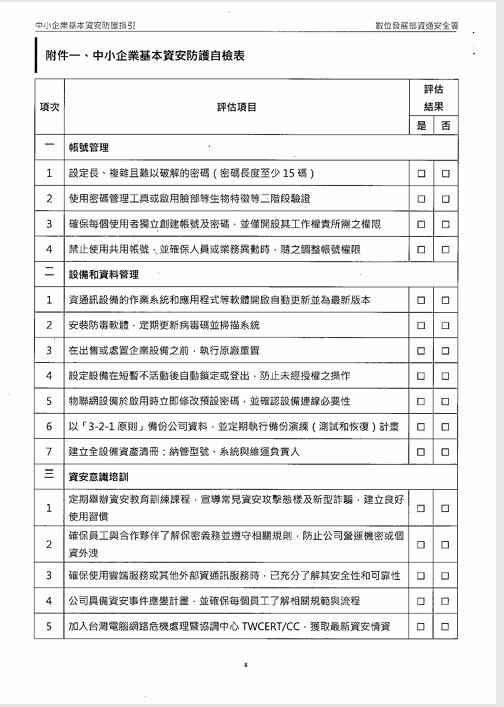 函轉數位發展部資通安全署「中小企業基本資安防護指引」1份,請協助轉知中小企業參考運用,請查照。